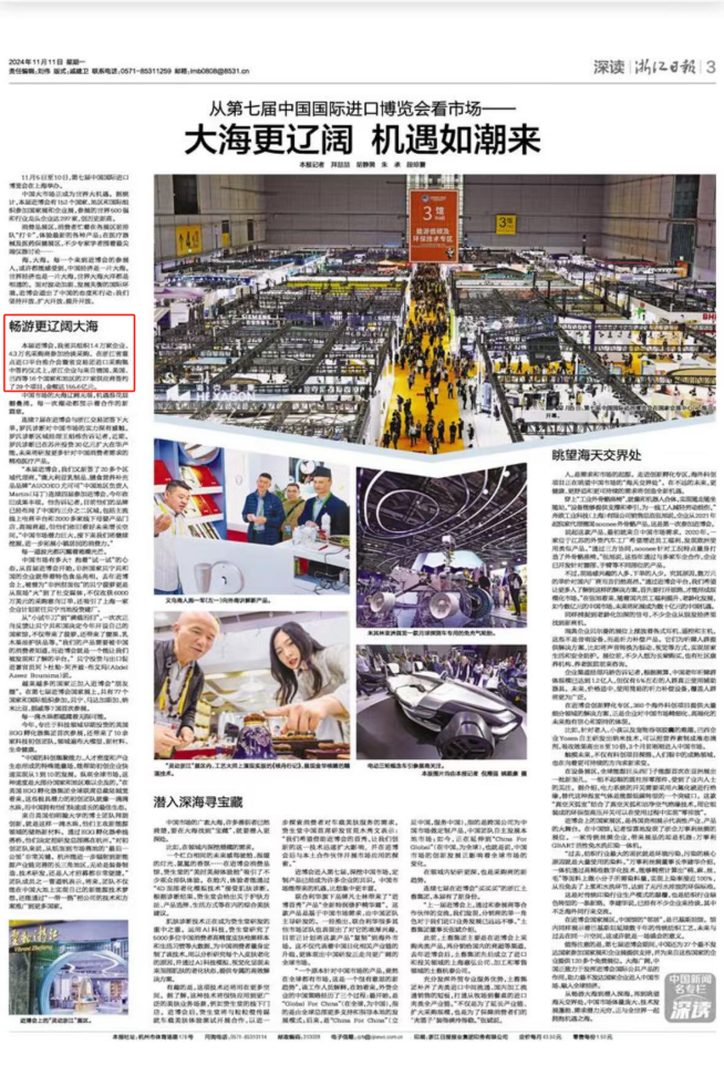 11月5日至10日,第七屆中國國際進口博覽會(進博會)在上海國家會展中心舉辦。本屆進博會以“新時代,共享未來”為主題,吸引了來自152個國家、地區和國際組織的參展商。浙江土畜組織旗下6家企業的30余名代表積極參會。浙江日報、潮新聞、浙江衛視、浙江國資等多家媒體對浙江土畜參會進行了報道。
