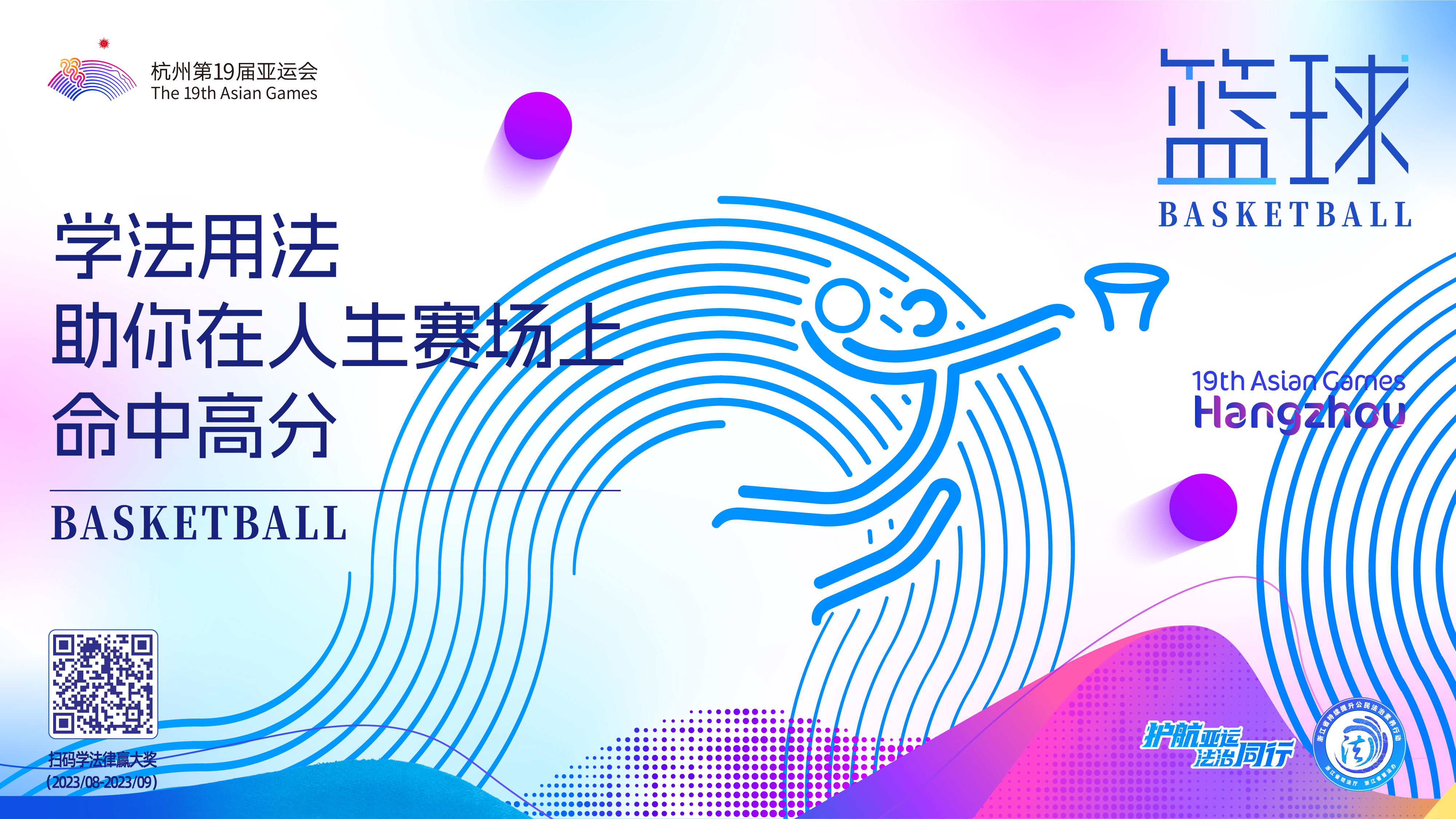 杭州第19屆亞運會即將到來,為營造更加濃厚的法治氛圍,由杭州亞組委指導(dǎo),浙江省司法廳、省普法辦原創(chuàng)的“護航亞運 法治同行”主題海報(一套共9張,含1張主視覺和8張配套海報)正式發(fā)布,這是2023年全省持續(xù)提升公民法治素養(yǎng)行動的特色活動之一。