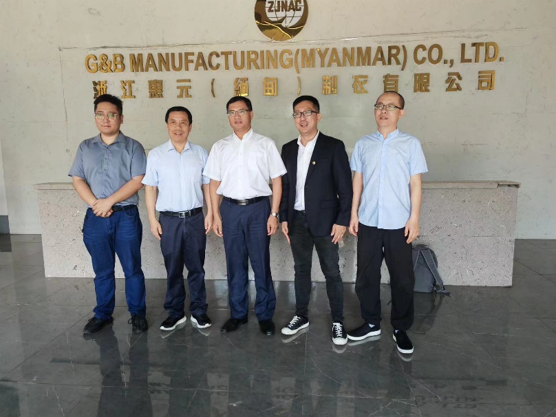 12月9日,中國紡織品進出口商會會長曹甲昌到公司惠元(緬甸)制衣工廠走訪調(diào)研,省商務廳外貿(mào)發(fā)展處副處長王舒立,緬甸工廠負責人等陪同調(diào)研。